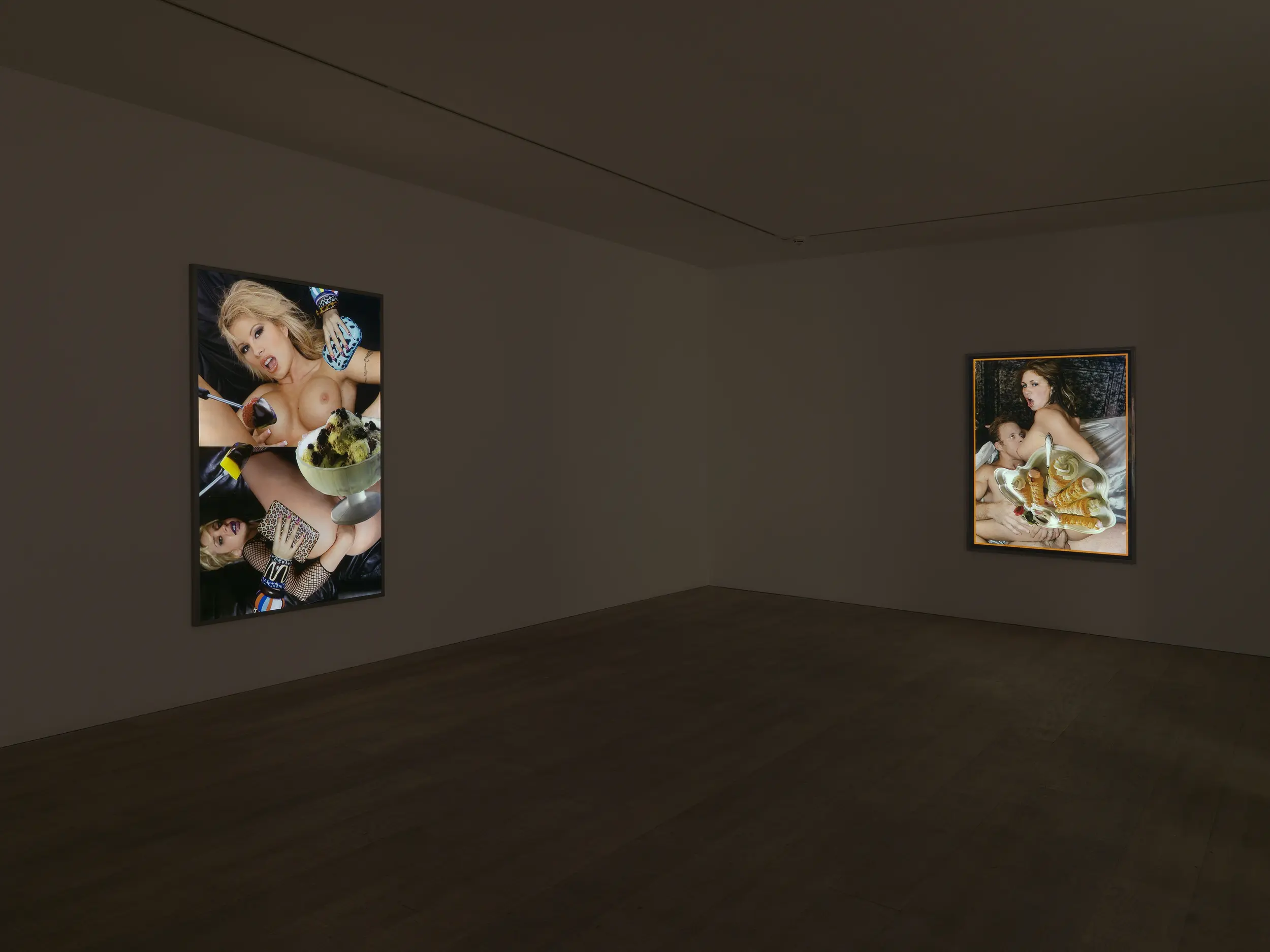 This show at Modern Art presents an expansive body of new collages by Linder: image making that is both critical and seductive. Linder exhibits manual collage and concrete manipulation of found images as intimately scaled physical works and lavishly printed lightbox transparencies. These new collages draw their subject matter from the pages of contemporary pornographic and domestic magazines in a working method that sees pornography and food-photography as analogues for one other; exploring the creation and sating of desires which stem from monstrous cultural hypertrophies of base biological drives.