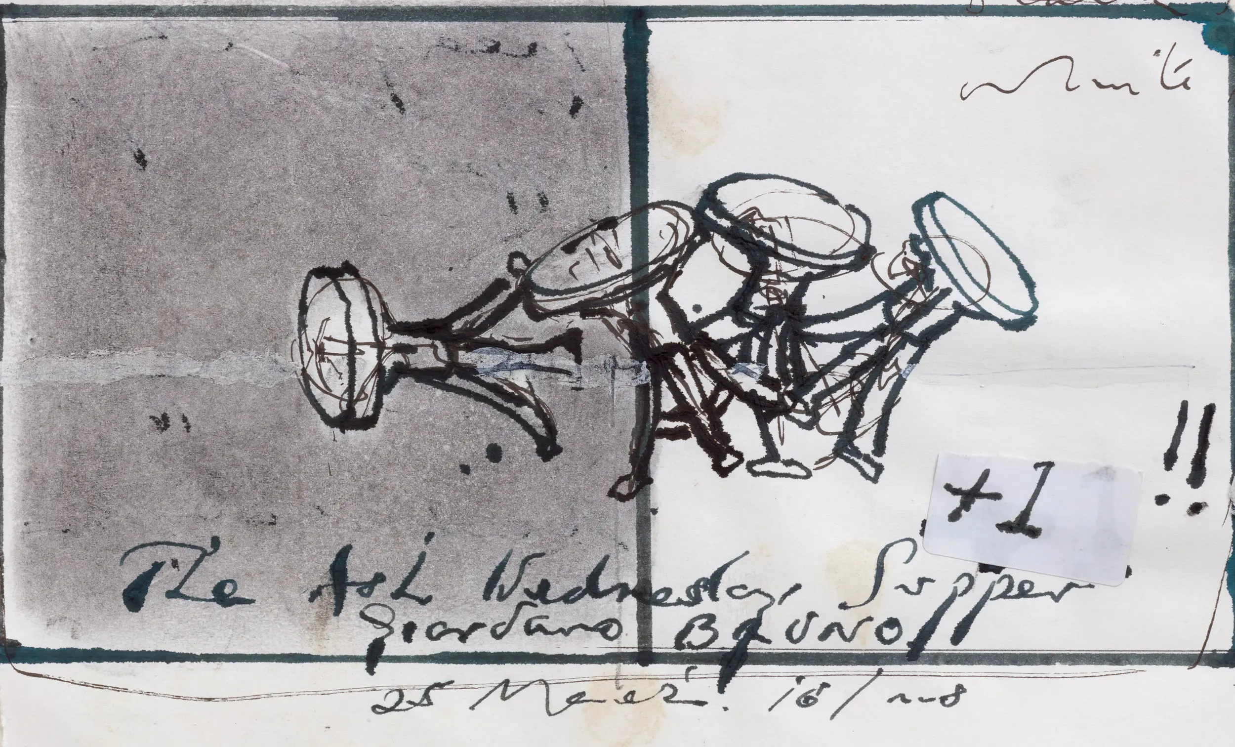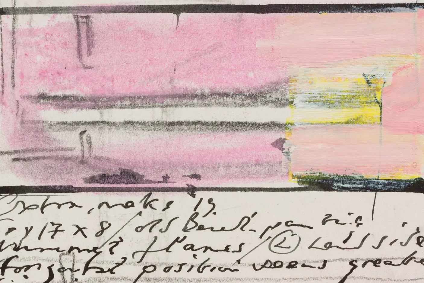 « Il dessine sur tout ce qui lui tombe sous la main lorsqu'il a besoin de noter une idée : papier sulfurisé, pages de garde arrachées à des livres, serviettes de restaurant, papier à lettres. Rares sont ces morceaux de papier que l'on pourrait normalement considérer comme du papier d'artiste. Cela confère à ses dessins un caractère trouvé, comme si l'image faisait partie intégrante de la surface et y avait toujours été. Ses toiles ne sont jamais peintes jusqu'au bord, elles révèlent différentes couches et des traces de lin nu. Son utilisation de papier trouvé et ce refus de dissimuler complètement le support du tableau me semblent remplir la même fonction ontologique, celle de nous rappeler la choséité de la chose, son objectivité, nous ramenant constamment au fait qu'il s'agit d'un dessin, d'une peinture. »