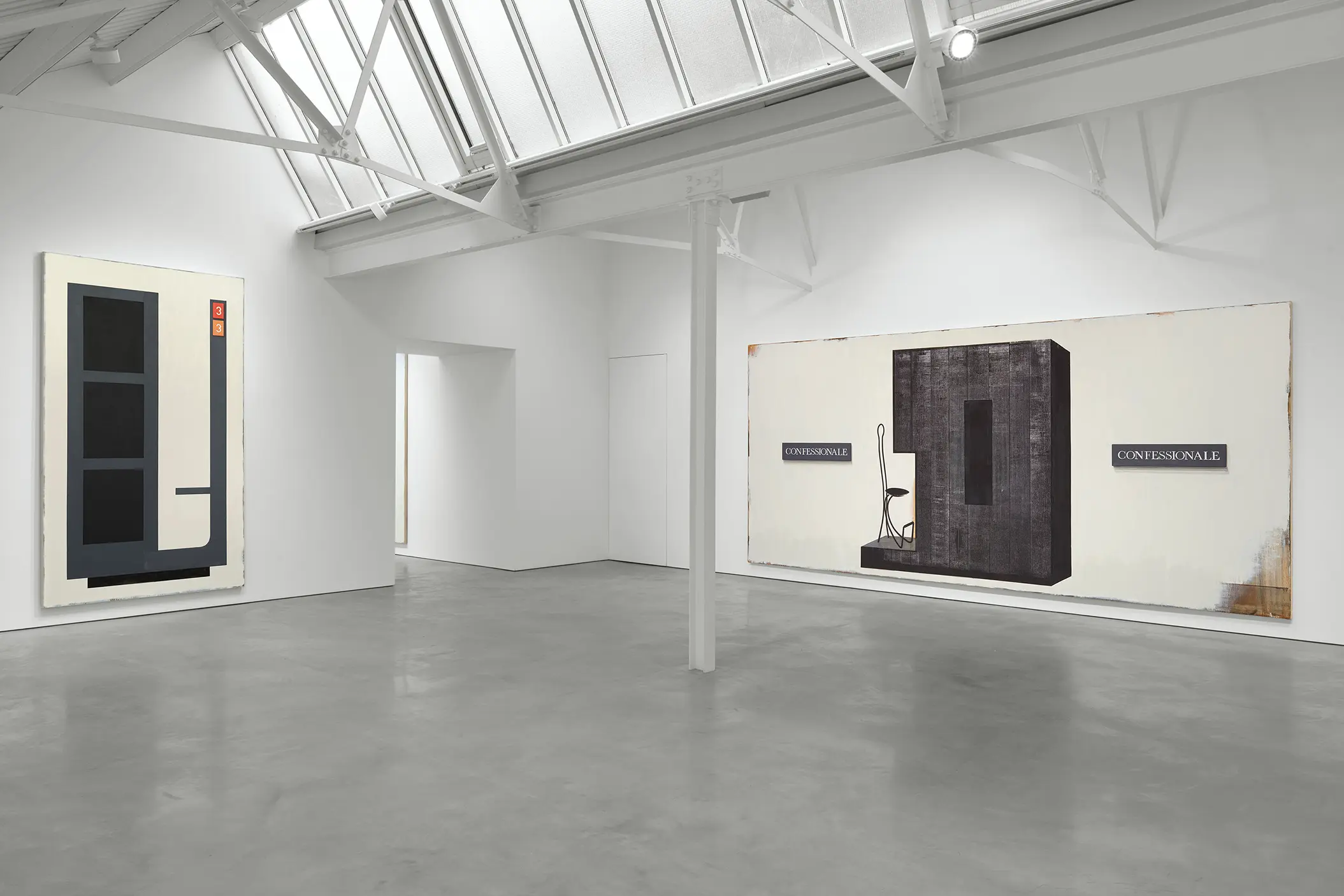 Modern Art is delighted to present ‘New Paintings’, Michael Simpson’s first exhibition with the gallery, and first in London for five years. Painting almost daily for over six decades, Simpson is renowned for probing both the formal mechanics of painting and in his own words, “the infamy of religious history”. He is best known for large paintings that repeat a small number of rigorously worked images, inspired by fifteenth century Venetian and early Flemish painting. In Simpson’s work, ladders, benches, and confessional boxes are reduced to geometric forms. Some of these objects levitate, others are rooted to the ground, casting shadows — all are depicted in a shallow space on a flat painted surface. His use of architectural objects, such as pulpits and Islamic minbars, confronts existential and political themes — uninhabited objects rendered potent symbols of authority.