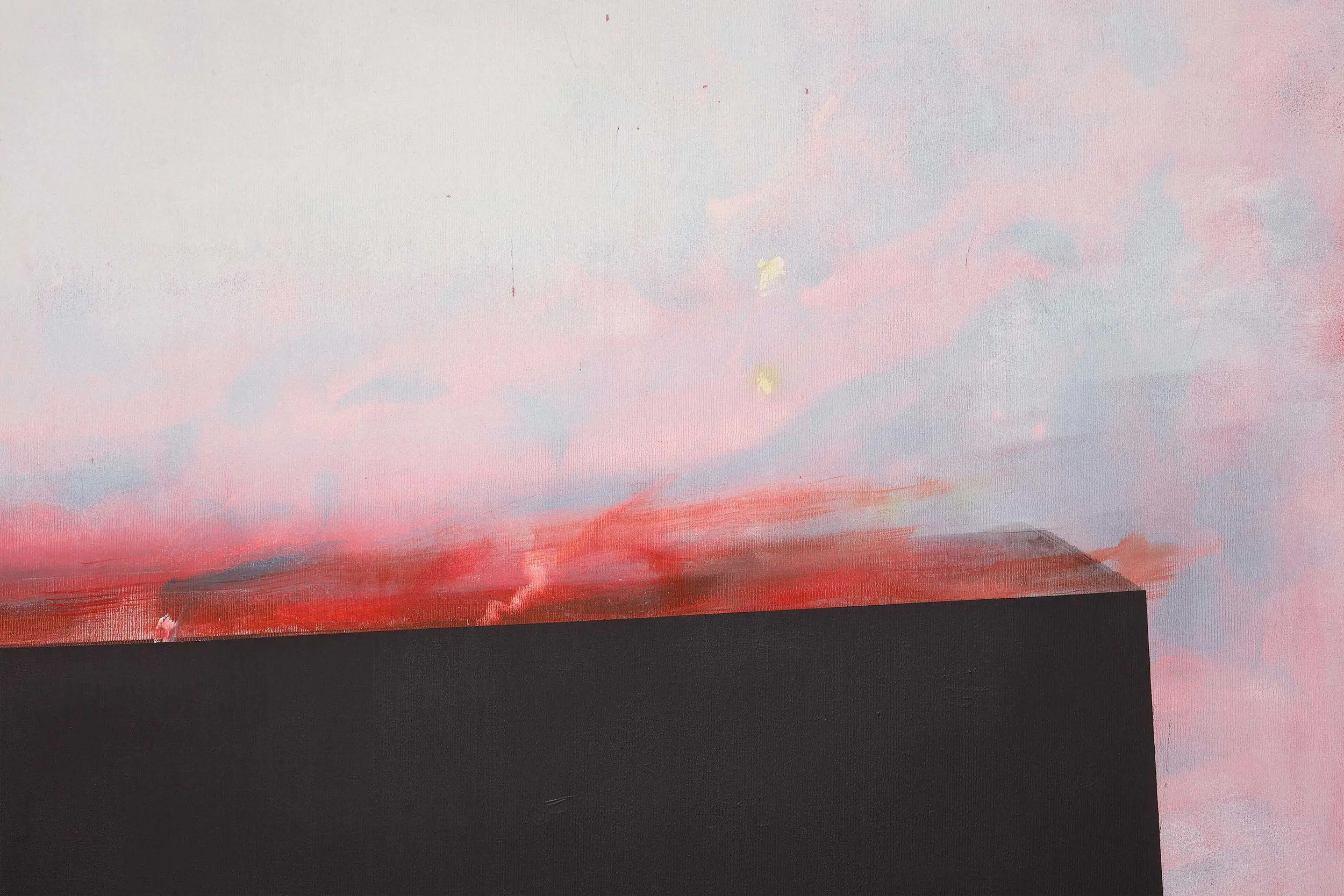 As a child, Michael Simpson would throw objects into the air, hoping they would remain suspended in space. Fittingly, in his Leper Squint series, a hagioscope or ‘squint’ is rendered as if floating. These small architectural details were historically positioned on the exterior of medieval churches to allow lepers to witness the sacraments without contaminating the congregation. Simpson’s paintings of confessionals are austere yet tangible objects. Like his squint paintings, his confessionals invite the viewer in, yet hold them at a distance — bordering on the functional, they become quixotic follies. Simpson frequently adds unoccupied chairs, and insufficient spacing to his confessionals; likewise, to his squint paintings he adds steps which are too small and vertiginous ladders. These additions are comedic fictions inserted by Simpson to skewer the notion of ascension.
