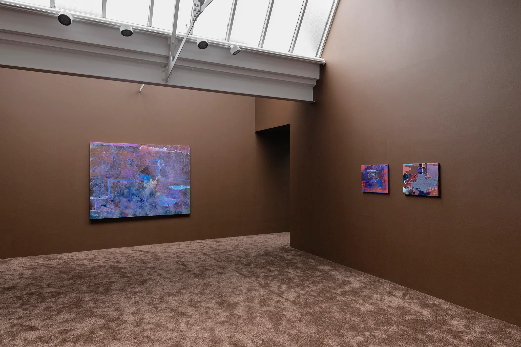 At both spaces, Price has painted the walls brown, installing a brown carpet at Helmet Row. Probing our preconceptions of the colour, the brown environment attunes the viewers’ eyes to see more clearly the particular combinations of colours and forms throughout all the works.