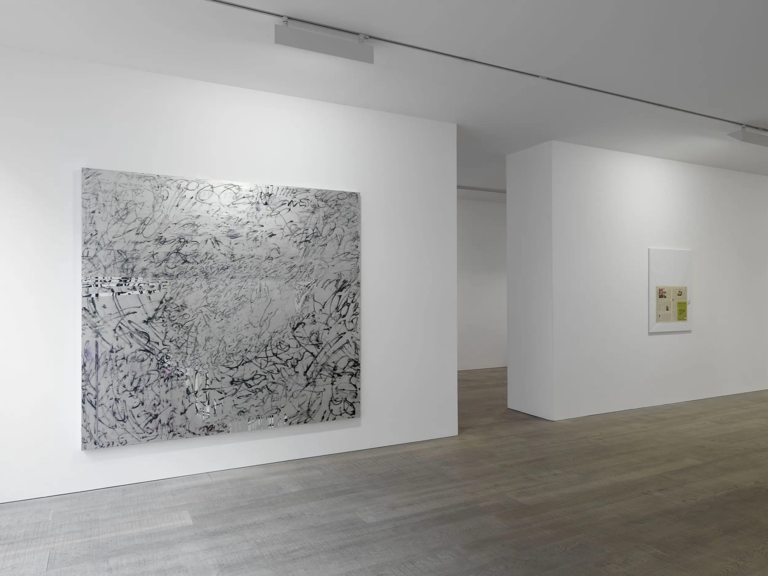 Several painters investigate alternatives to the paintbrush: for Angiola Gatti, the preferred tool is a humble ballpoint pen employed to carve out collapsing spaces; Cheryl Donegan wields a knife to slice into glittering metallic tape in her shredded, stuttering paintings. Peter Soriano’s conceptual wall pieces track their own making, reflecting on the artist’s every decision and how it might have gone differently. If Sergej Jensen refrains from cluttering his stretched fabrics with even a single stroke, Jacqueline Humphries goes to the other extreme, ceaselessly adding to and obliterating her suspended calligraphy. Richard Aldrich, who insists that for him painting is the opposite of ‘impossible’, offers four isolated images using four distinct techniques and four representational languages: the syntax of looking we use to reconcile them leaves meaning itself provisional.