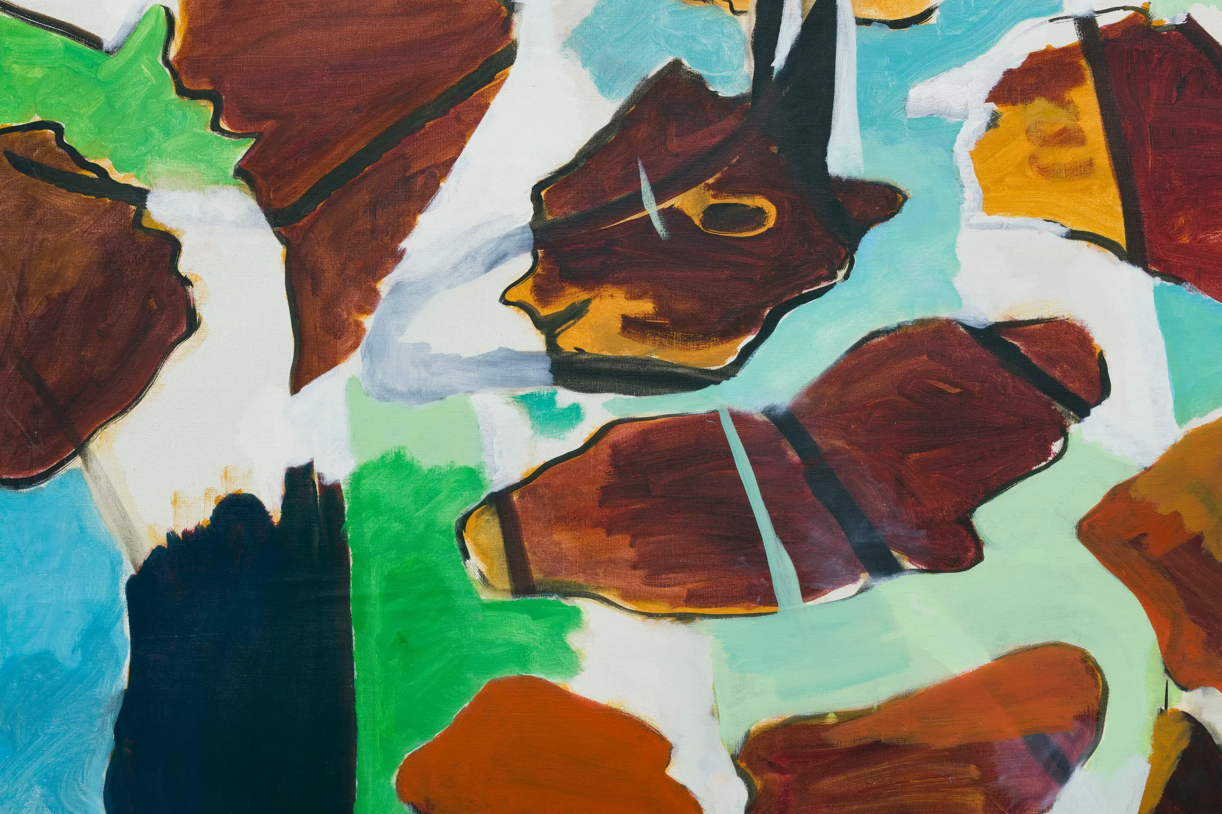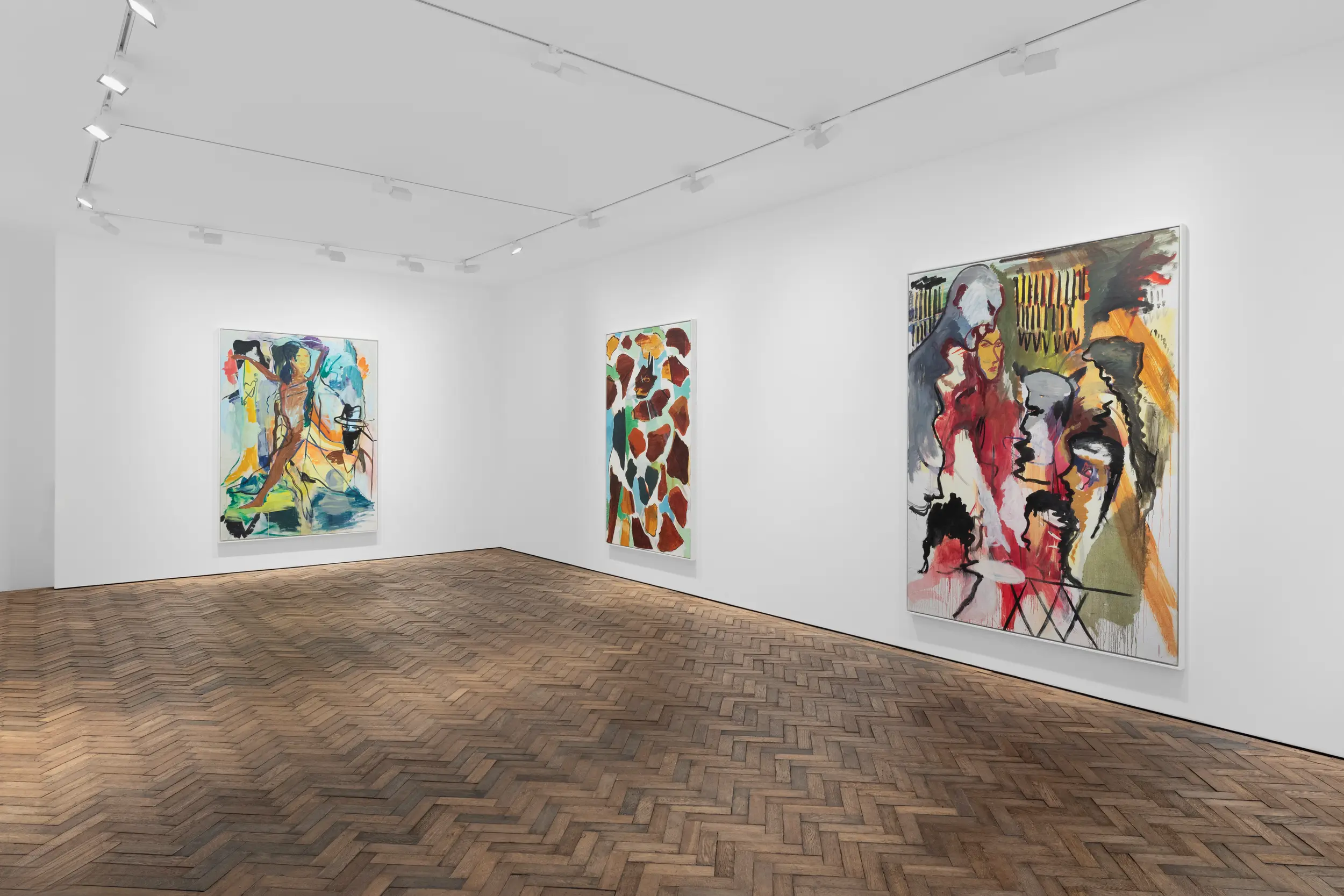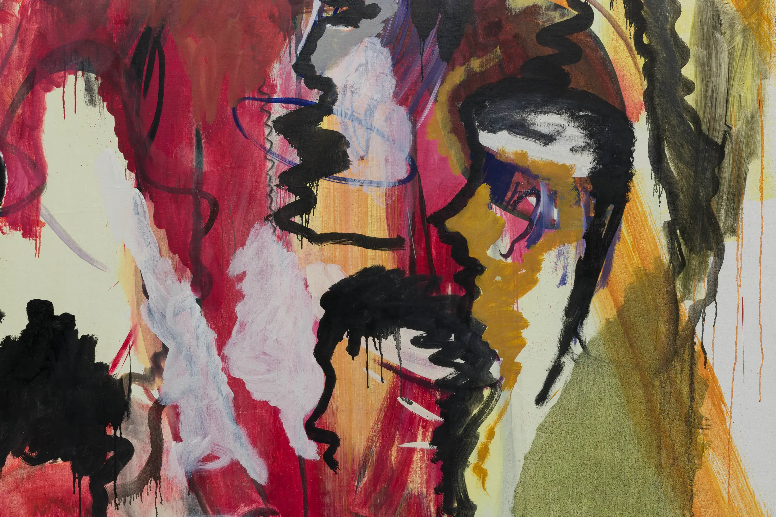 Modern Art is delighted to announce an exhibition of paintings by René Daniëls, his third with the gallery. The seven paintings, most of which have never been exhibited, span the formative period of 1980 to 1984, prior to and prefiguring the development of his signature 'bowtie' motif. Early works from this period are mainly figurative, notably loose in brushwork, and made up of several layers often revealing traces of underpaintings. Superimposed figures appear as dreamlike apparitions, floating over the canvas and dissolving into inanimate objects. Together this body of work shows how Daniëls used mysticism, ceremonial rituals, as well as woodland and jungle environments as iconography to probe the lexicons of art history and mechanisms of the art market.