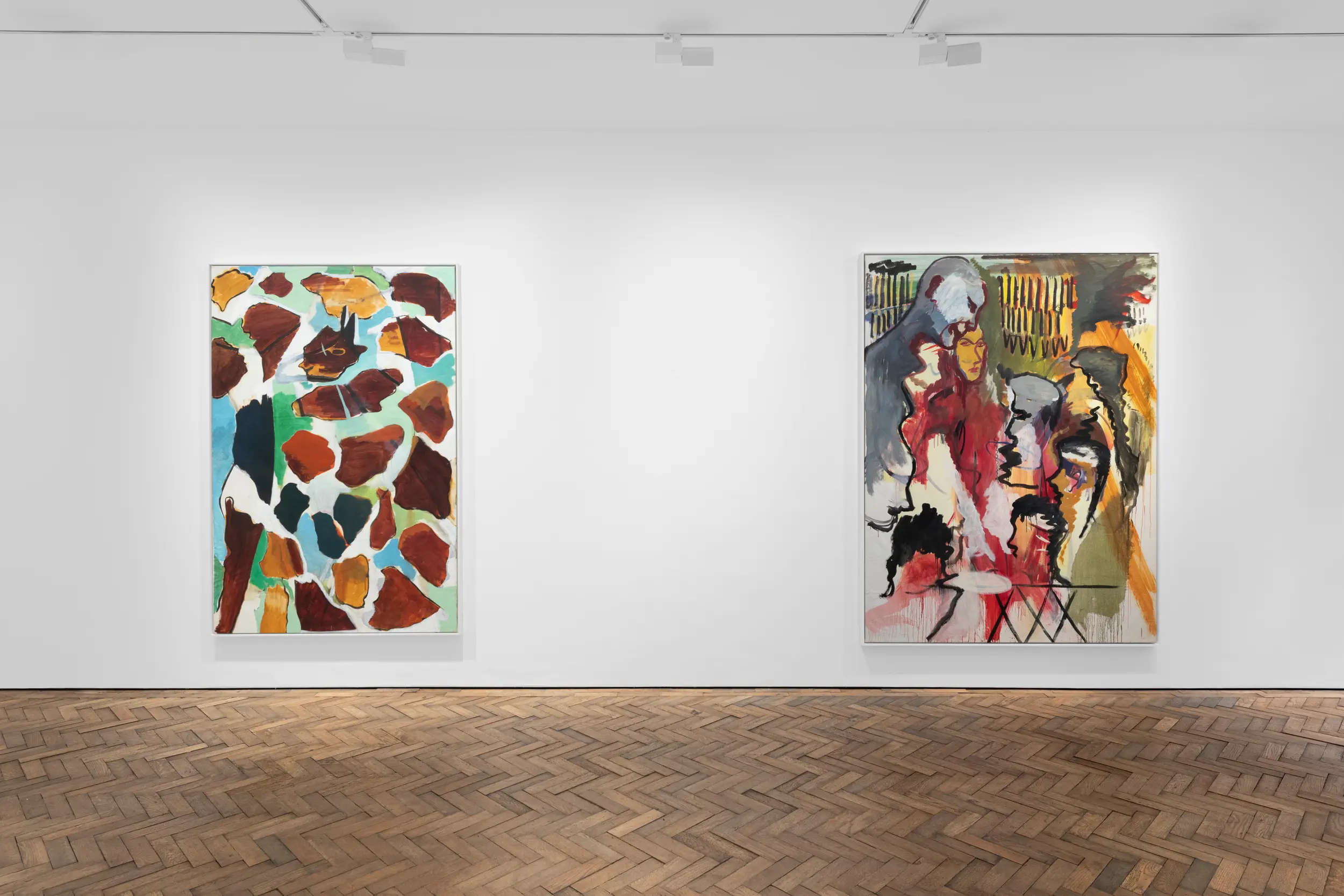 Modern Art is delighted to announce an exhibition of paintings by René Daniëls, his third with the gallery. The seven paintings span the formative period of 1980 to 1984, prior to and prefiguring the development of his signature 'bowtie' motif. Early works from this period are mainly figurative, notably loose in brushwork, and made up of several layers often revealing traces of underpaintings. Superimposed figures appear as dreamlike apparitions, floating over the canvas and dissolving into inanimate objects. Together this body of work shows how Daniëls used mysticism, ceremonial rituals, as well as woodland and jungle environments as iconography to probe the lexicons of art history and mechanisms of the art market.